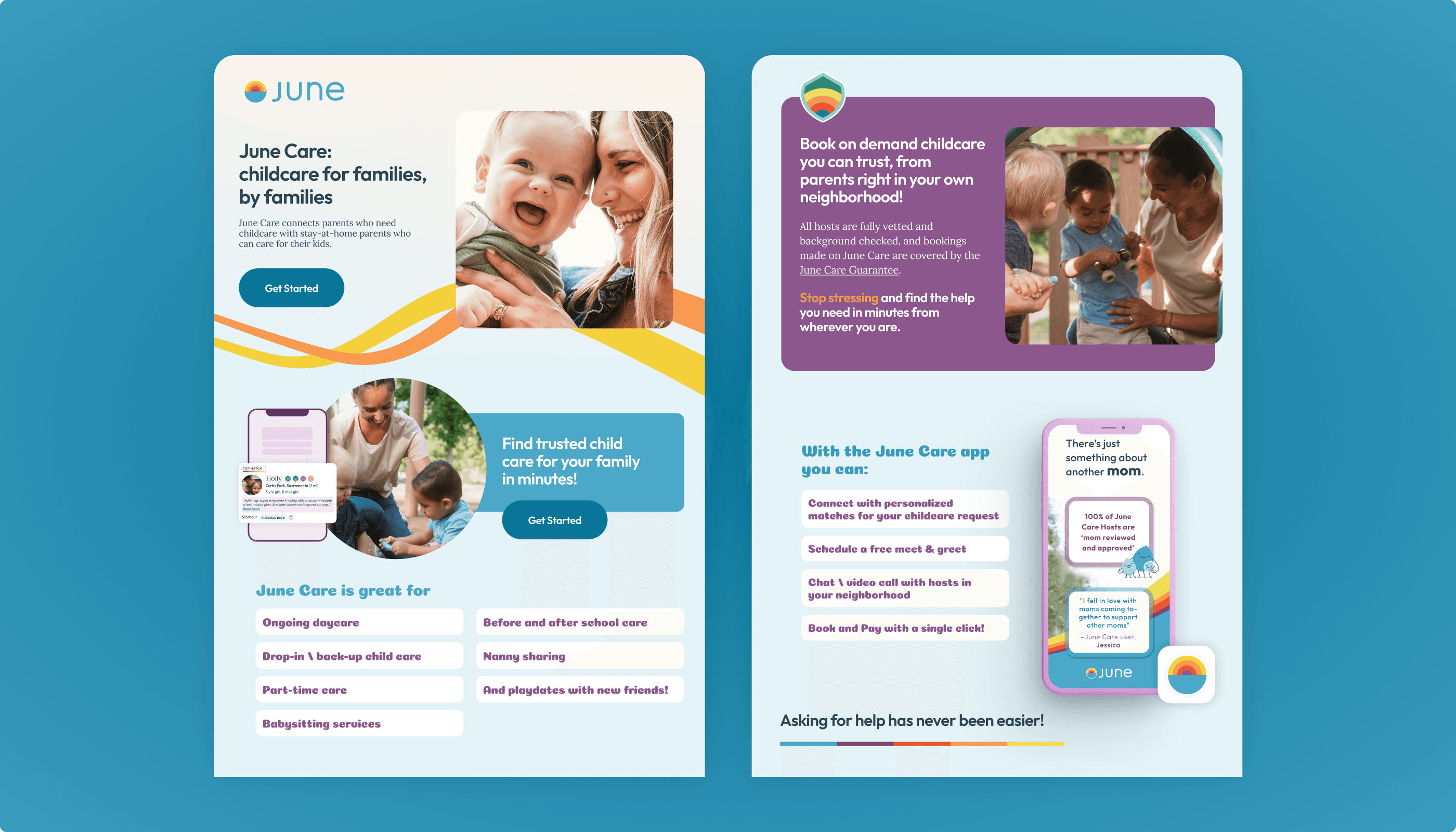 Childcare is one of the toughest puzzles for modern families. It is hard to find, often expensive, and rarely flexible. June Care needed our help to build a platform that parents could trust and that was simple to use, all while keeping pace with the fast changing demands of an early stage startup. They had to create trust immediately, reassure parents about safety, and fit seamlessly into the lives of multitasking families.